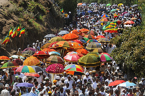 Rahiplerin taşıdığı renkli kadife ÅŸemsiyelerin altında Etiyopya’lıların Tabot adını verdiÄŸi kutsal emanet sandığı özenli bir ÅŸekilde rahiplerin baÅŸlarının üstünde taşınıyordu.